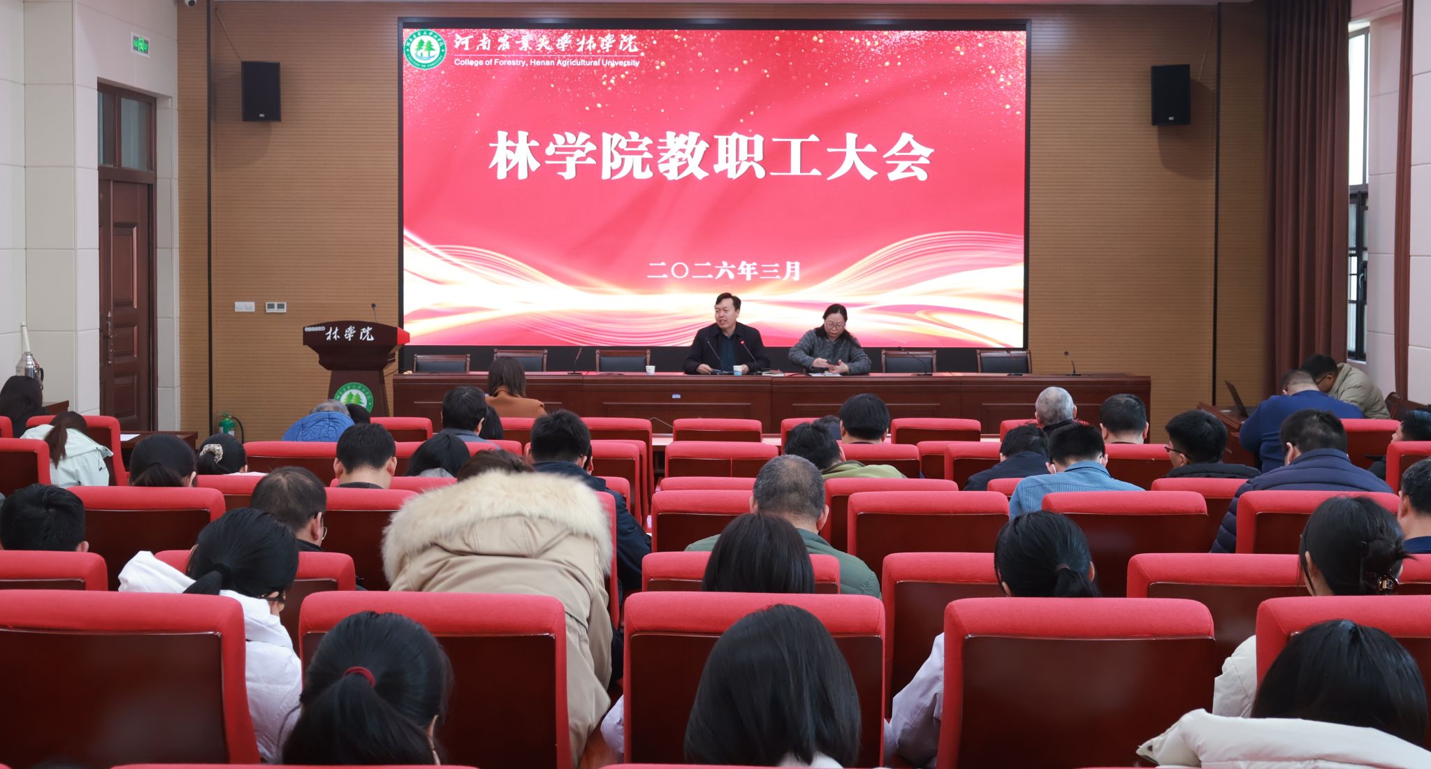 召开新学期全体教职工大会。院党委书记化青报、院党委副书记王娟、副院长李喜梅、副院长张学芳以及线上麻将