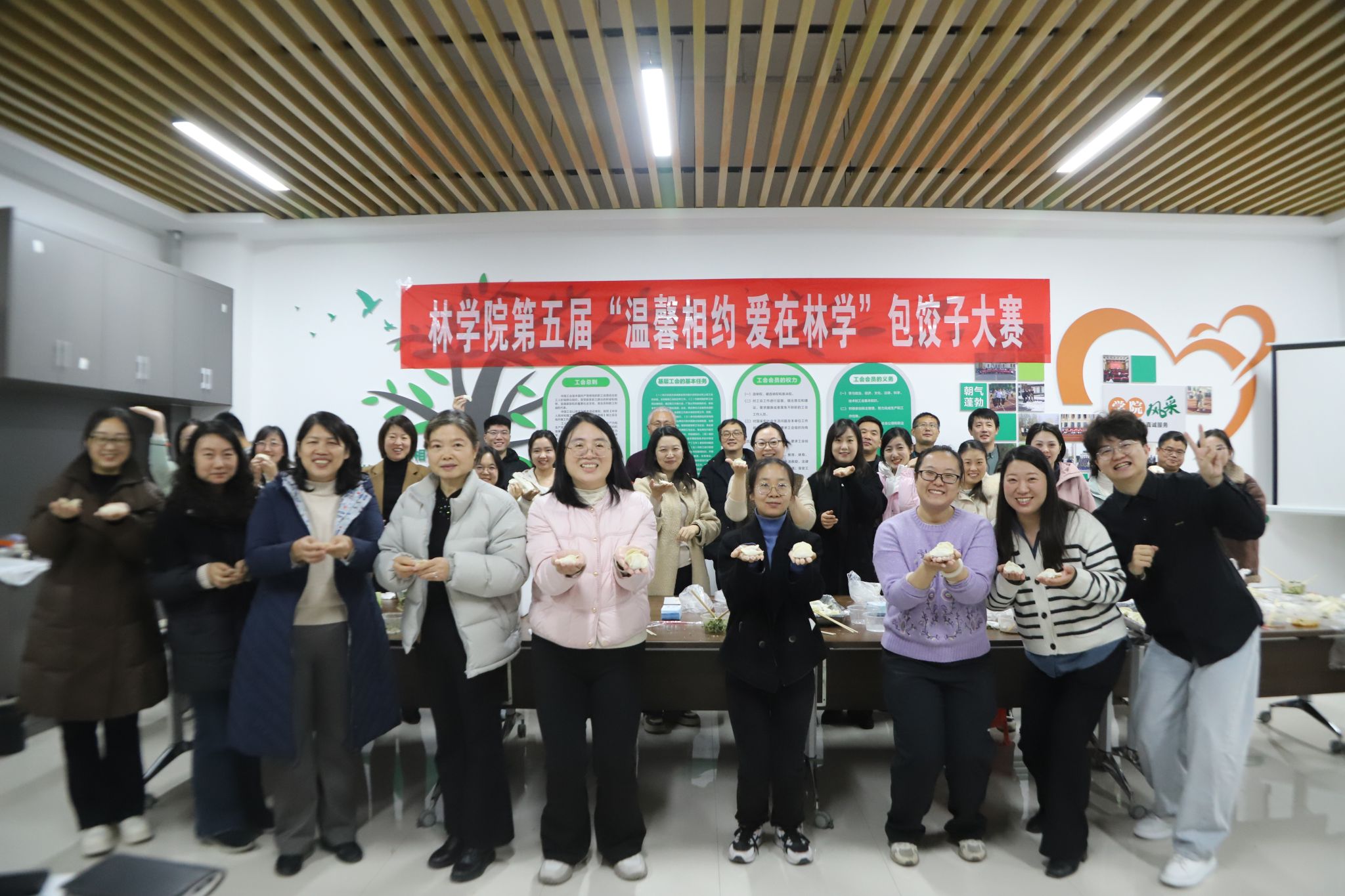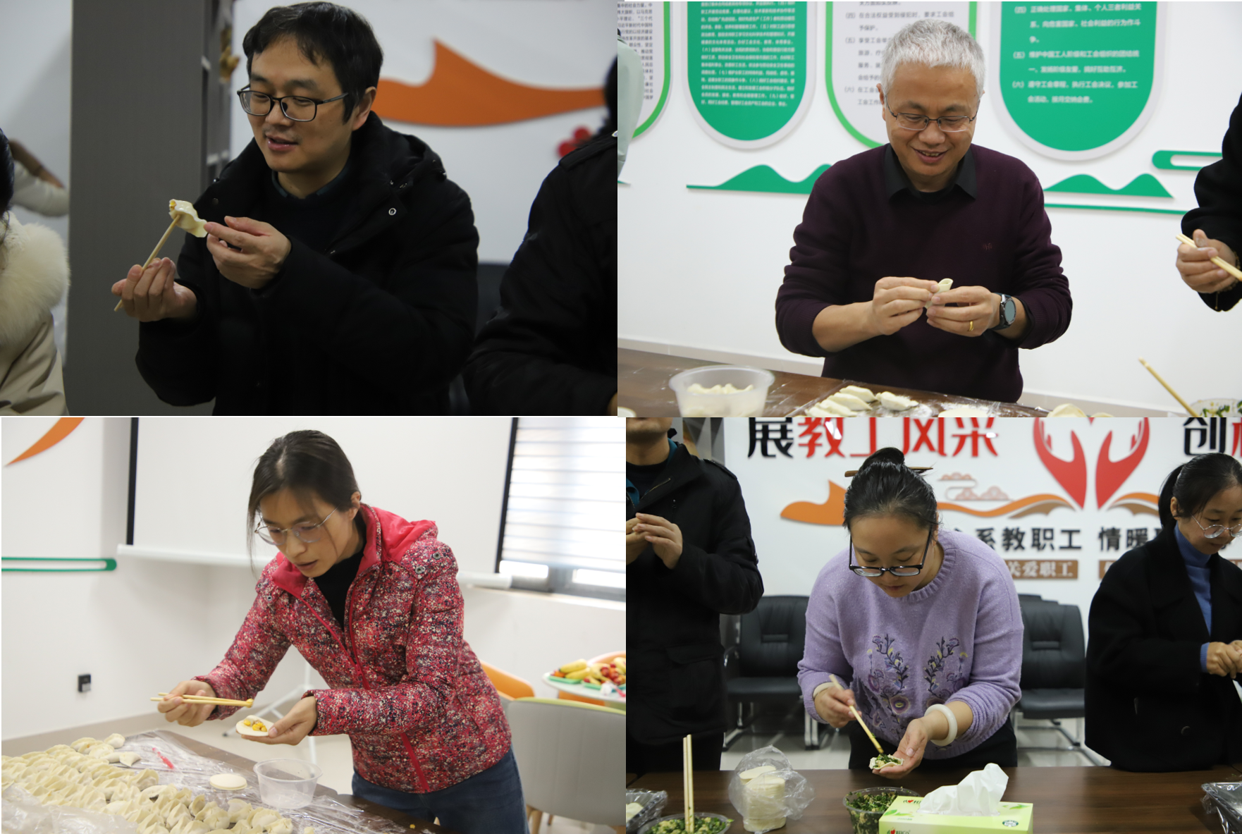 于力行楼-南-247举办第五届“温馨相约 爱在林学”包饺子大赛。院党委书记化青报、院党委副书记王娟、副院长张学芳及线上麻将